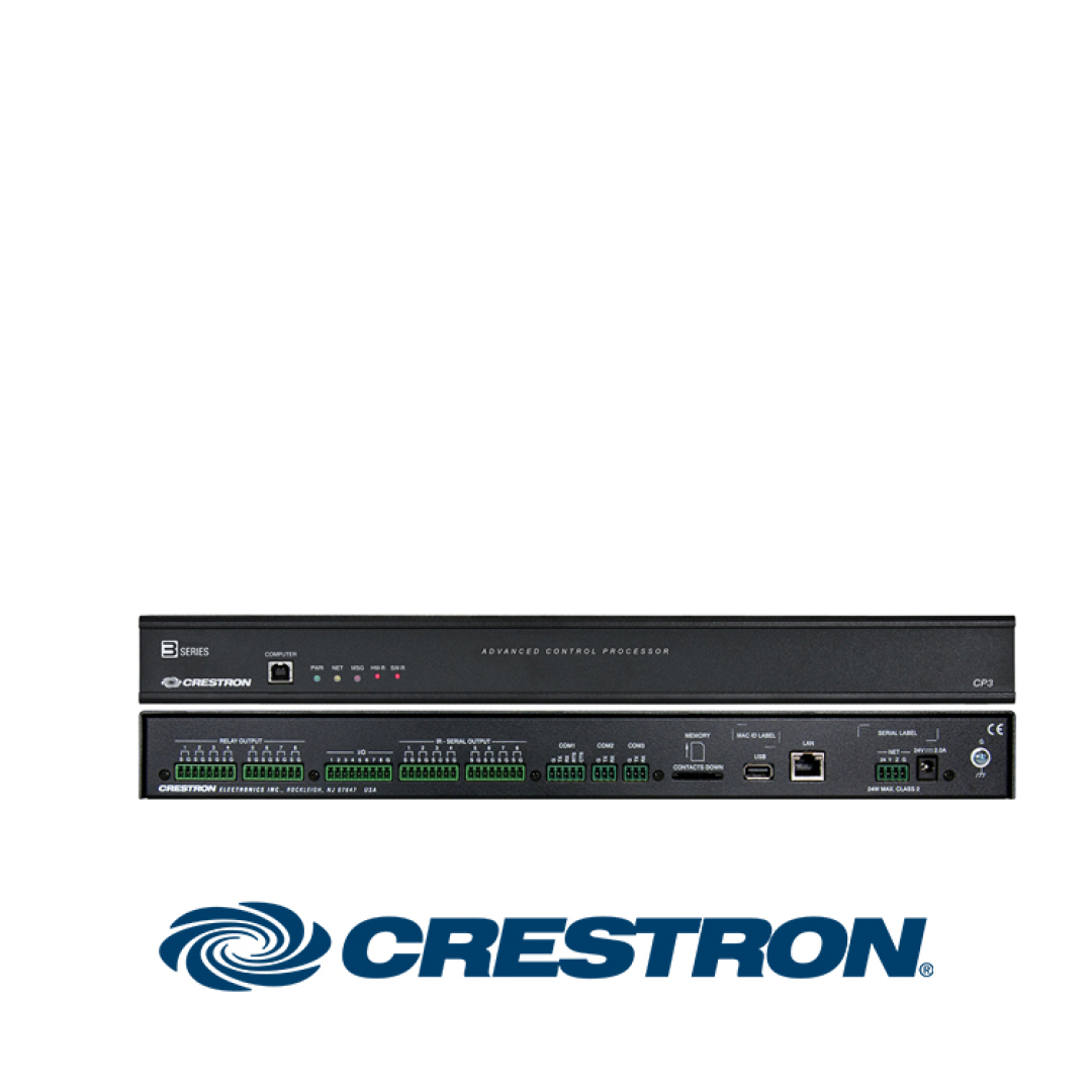 Crestron CP3, 3-Series® kontrol motoru ile donatılmış kurumsal sınıf bir otomasyon işlemcisidir. Gelişmiş ağ yönetimi, IP kontrolü, geniş hafıza kapasitesi ve modüler programlama mimarisi sayesinde AV sistemlerinden aydınlatma, perde, HVAC ve güvenliğe kadar tüm akıllı bina sistemlerini merkezi olarak kontrol eder. Üniversiteler, oteller, toplantı salonları, ticari ofisler ve özel konutlar gibi birçok projede ideal bir çözüm sunar.