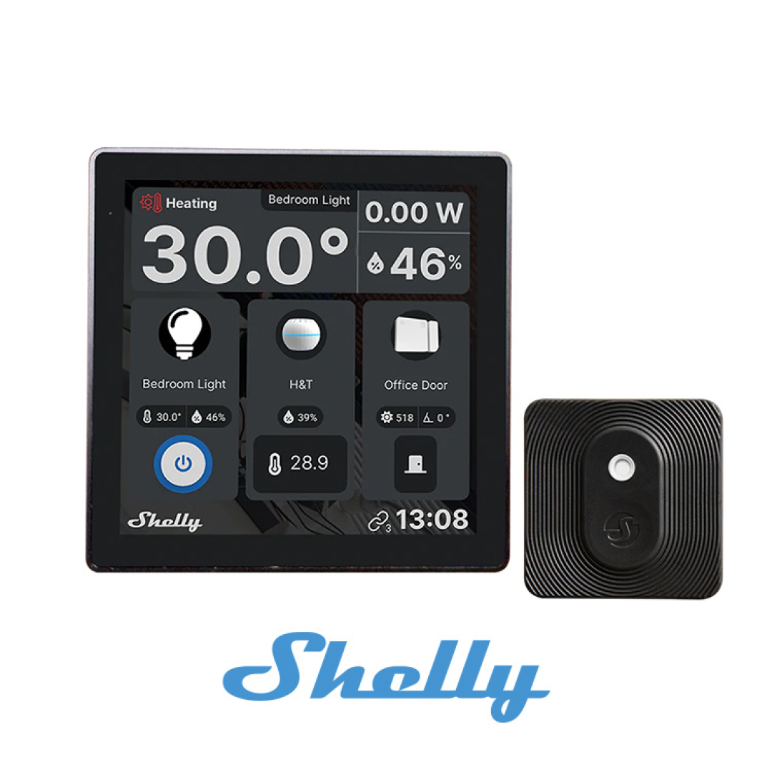 Shelly Wall Display, akıllı ev cihazlarını tek bir merkezden yönetmenizi sağlayan, 4” dokunmatik ekrana sahip şık ve modern bir kontrol panelidir. Artık Shelly BLU H&T sensörü ile entegre çalışarak bulunduğunuz odada sıcaklık ve nem verilerine göre iklim kontrolü yapılmasına imkan tanır.